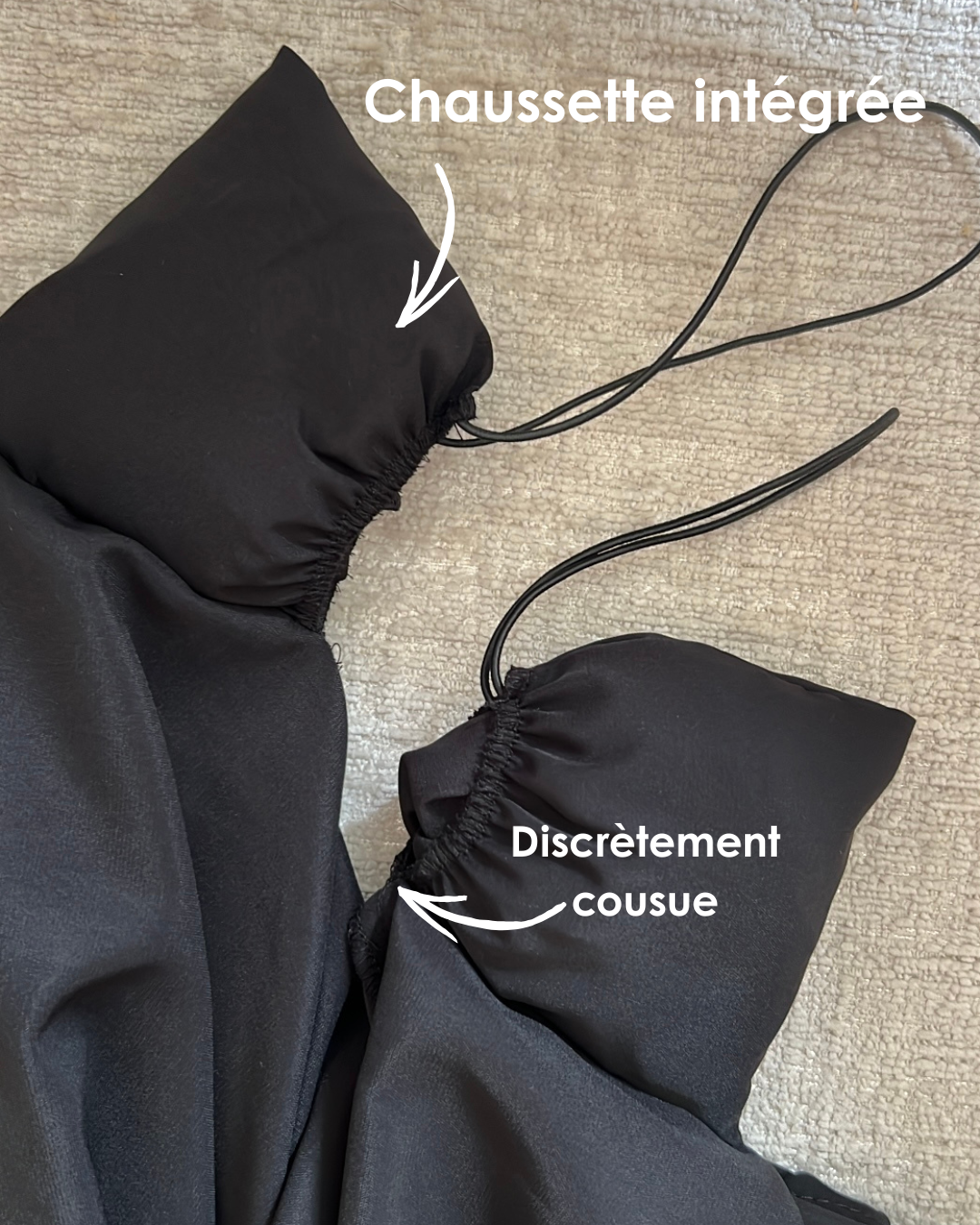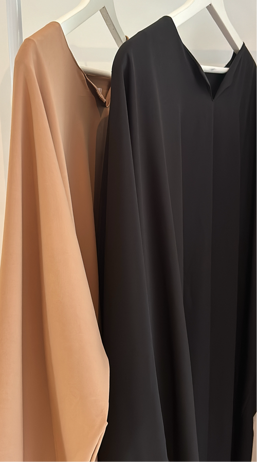 Dans notre collection Rāhma, chaque robe cache un secret bien pensé : une paire de chaussettes intégrées assorties, conçues dans la même matière fluide et élégante que la robe.